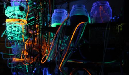 Eirini Kokkinidou is a Visual Artist experimenting with Interactive Installations. She studied AudioVisual Arts at Ionian University, Greece, finalized an Internship on Curating in ArtLaboratoryBerlin and is running a AudioVisual supplies and events company in Greece. Boukis Vassilis is a creative technologist – artist from Greece. He is using technology in an effort to interpret natural surroundings, in a playfull explorative manner, using projections, interactive installations, kinetic sculptures and sound. He is currently living in Berlin developing his personal and freelancing work with various partners. http://bouksi.com/